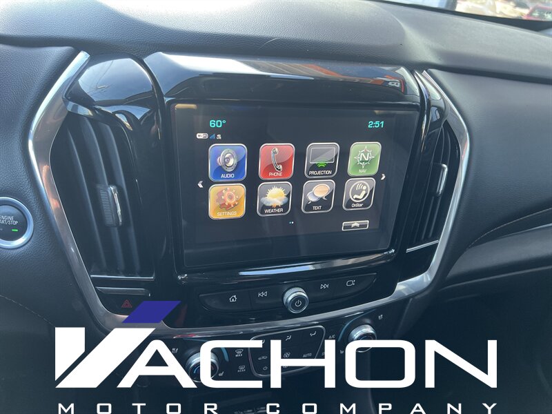 KBB.com 10 Most Affordable 3-Row Vehicles. Delivers 25 Highway MPG and 17 City MPG! This Chevrolet Traverse boasts a Gas V6 3.6L/ engine powering this Automatic transmission. TRANSMISSION, 9-SPEED AUTOMATIC (STD), SUNROOF, DUAL SKYSCAPE 2-PANEL POWER with tilt-sliding front and fixed rear with sunscreen, SEATS, FRONT BUCKET (STD).* This Chevrolet Traverse Features the Following Options *LICENSE PLATE FRONT MOUNTING PACKAGE (will be forced on orders with ship-to states that require a front license plate) , PREMIER PREFERRED EQUIPMENT GROUP includes Standard Equipment, MOSAIC BLACK METALLIC, LPO, WHEEL LOCKS includes 4 locks and 1 key, LPO, ROOF RACK CROSS RAILS, LPO, ALL-WEATHER FLOOR MATS, THIRD ROW, LPO, ALL-WEATHER FLOOR MATS, FIRST AND SECOND ROW, LPO, ALL-WEATHER CARGO MAT, JET BLACK, PERFORATED LEATHER-APPOINTED SEAT TRIM, ENGINE, 3.6L V6, SIDI, VVT (310 hp [232.0 kW] @ 6800 rpm, 266 lb-ft of torque [361 N-m] @ 2800 rpm) (STD).* This Chevrolet Traverse is a Superstar! *KBB.com 10 Most Affordable 3-Row Vehicles, KBB.com Best Family Cars, KBB.com 10 Most Awarded Brands.* Visit Us Today *Stop by Byrider - MA102 located at 957 Washington Street, S. Attleboro, MA 02703 for a quick visit and a great vehicle!